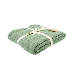 Plaid Louison gaze de coton molletonnée imprimée céladon de La Maison de Lilo. Plaid tissé à la main.
