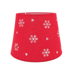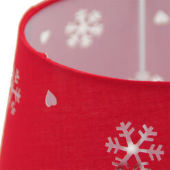 Abat-jour rouge avec des flocons et des coeurs.