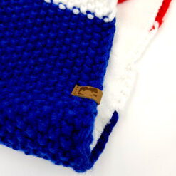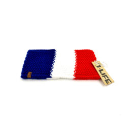 Bandeau cache oreille en tricot « Bleu Blanc Rouge ». Taille unique.