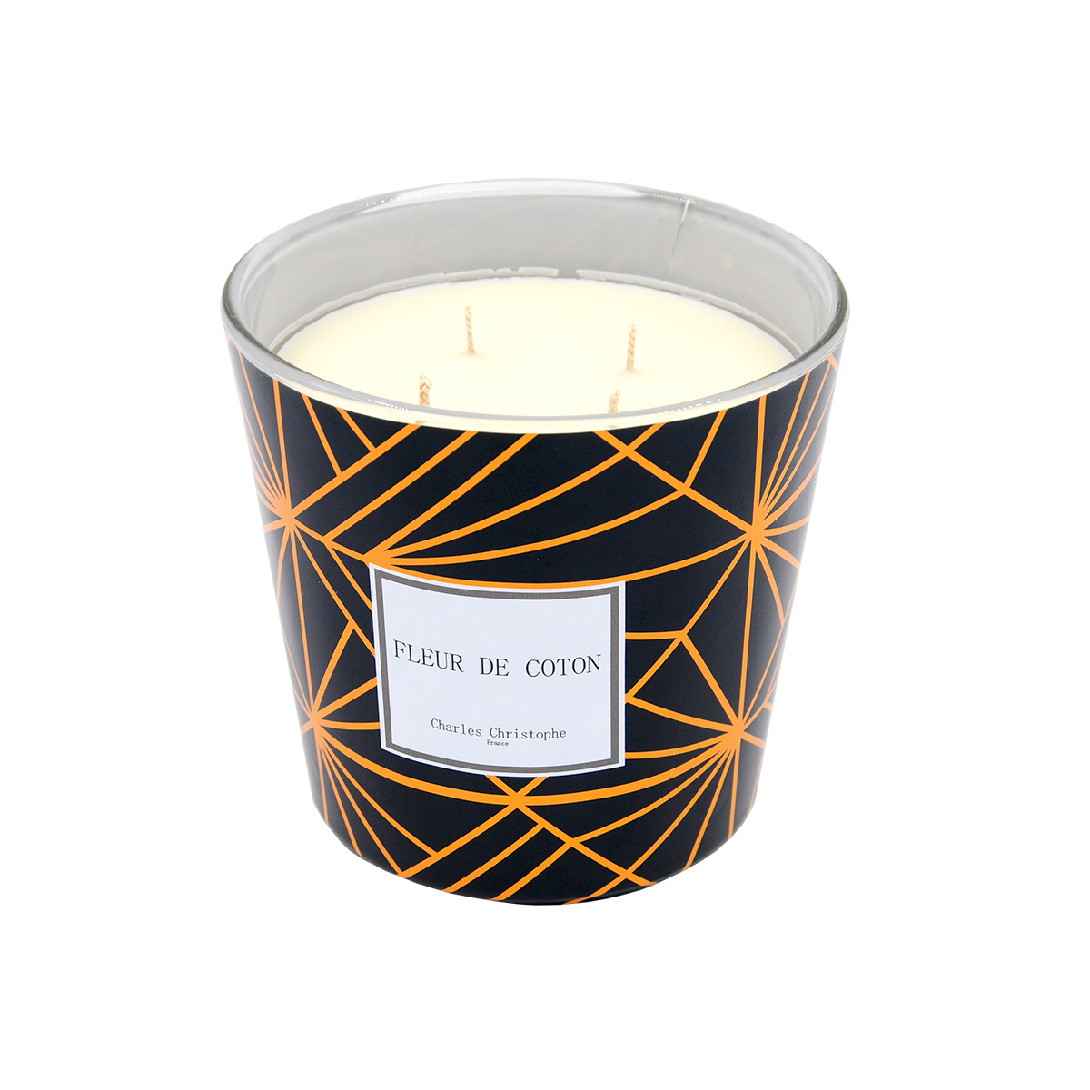 La bougie parfumée édition Fleur de Coton. Son verre, orné d’une sérigraphie, vous invite à la relaxation…