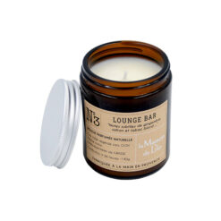 Bougie n°3 de La Maison de Lilo, senteur lounge bar « notes subtiles de gingembre, safran et tabac blond… ». Bougie parfumée naturelle, cire 100% végétale sans OGM. Mèche coton, huiles essentielles de Grasse. Combustion ± 36 heures – 140g. Bougie fabriquée à la main en Provence, France.