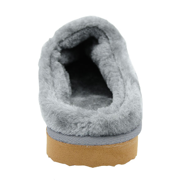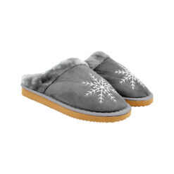 Chaussons de couleur grise avec un flocon sur l’avant de la pantoufle. Semelle rigide.