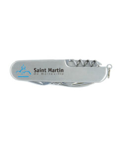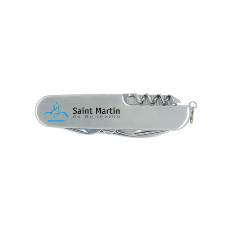Couteau multifonctions (7 outils) en acier inoxydable avec sur l’une des deux faces le logo Saint-Martin-de-Belleville.