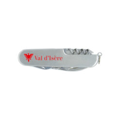 Couteau multifonctions (7 outils) en acier inoxydable avec sur l’une des deux faces le logo de Val d’Isère.