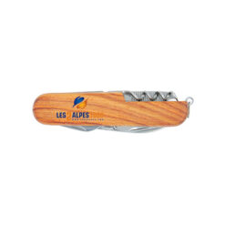 Couteau multifonctions (7 outils) en bois avec sur l’une des deux faces le logo Les 2 Alpes.