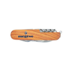 Couteau multifonctions (7 outils) en bois avec sur l’une des deux faces le logo de Megève.