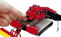 P 600 représente la dernière génération de Pistenbully associant puissance, plus de design et encore plus de fonctionnalités. Le modèle à l’échelle 1:50 permet de reproduire de manière authentique avec la nouveauté SIKU les applications alpines de préparation des pistes de descente et de ski de fond. La large lame chasse-neige avant est bien évidemment relevable et abaissable. Si besoin, elle peut aussi être déplacée latéralement. Particulièrement impressionnant : la fraise AlpinFlex entièrement mobile est installée à larrière si bien que lon peut assister à la compression de la neige à ce niveau. SIKU accorde la plus grande importance aux détails du P 600 : le phare de travail et les phares arrière sont ainsi reproduits. Il est possible dorienter le treuil indispensable sur le plateau, de lever et de descendre le bras correspondant pour la fonction de transport. Limpression visuelle densemble est complétée par le conducteur du Pistenbully qui a pris place dans la cabine complètement transparente et dispose en même temps dun cockpit fidèlement reproduit.