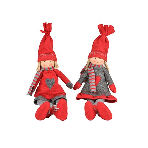 Assortiment de 2 figurines assises, une rouge et une grise. Format grand modèle, hauteur 32 cm.