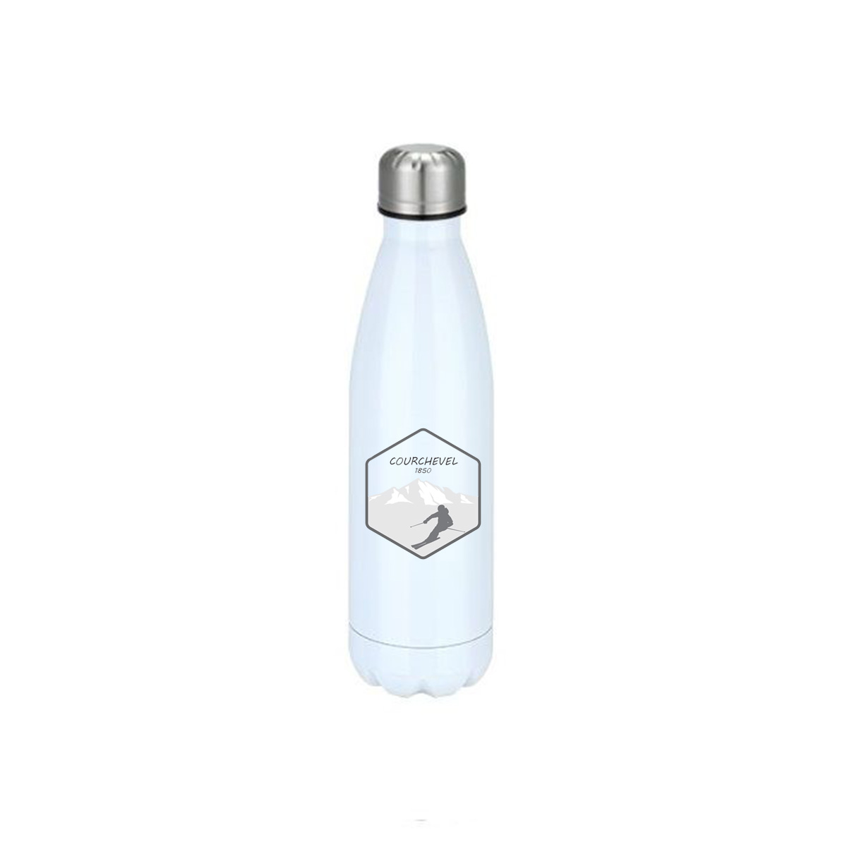 Gourde isotherme avec dessin blason ski Courchevel sur les deux faces. Contenance 500ml.