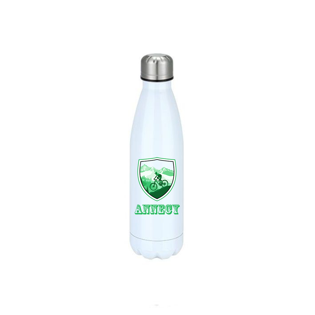 Gourde isotherme dessin VTT blason Annecy sur les deux faces. Contenance 500ml.