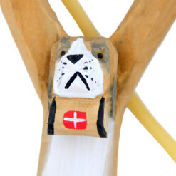 Lance-pierre en bois avec sur le manche une tête de Saint-Bernard. Le jouet d’extérieur idéal pour votre enfant !