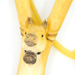 Lance-pierre en bois avec sur le manche une tête de vache. Le jouet d’extérieur idéal pour votre enfant !