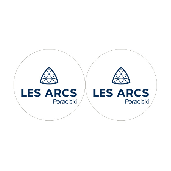 Lot de 2 autocollants avec le logo des Arcs de forme ronde (diamètre 7 cm).