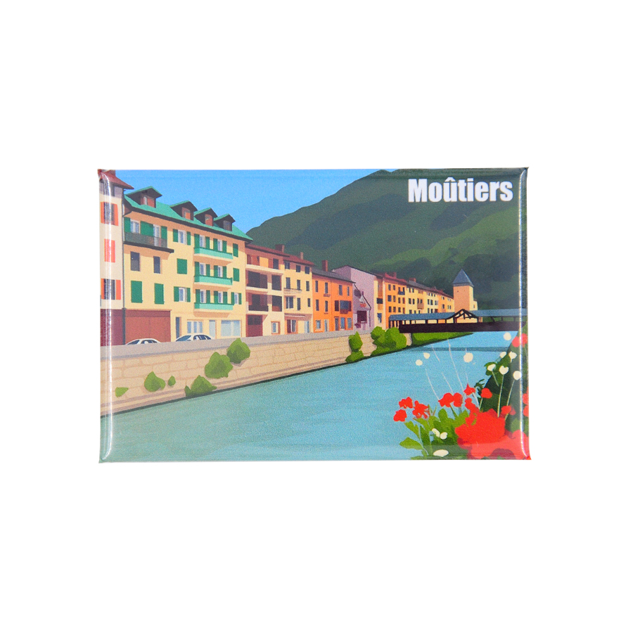 Magnet souvenir dessin d’un pont et de l’Isère à Moûtiers.