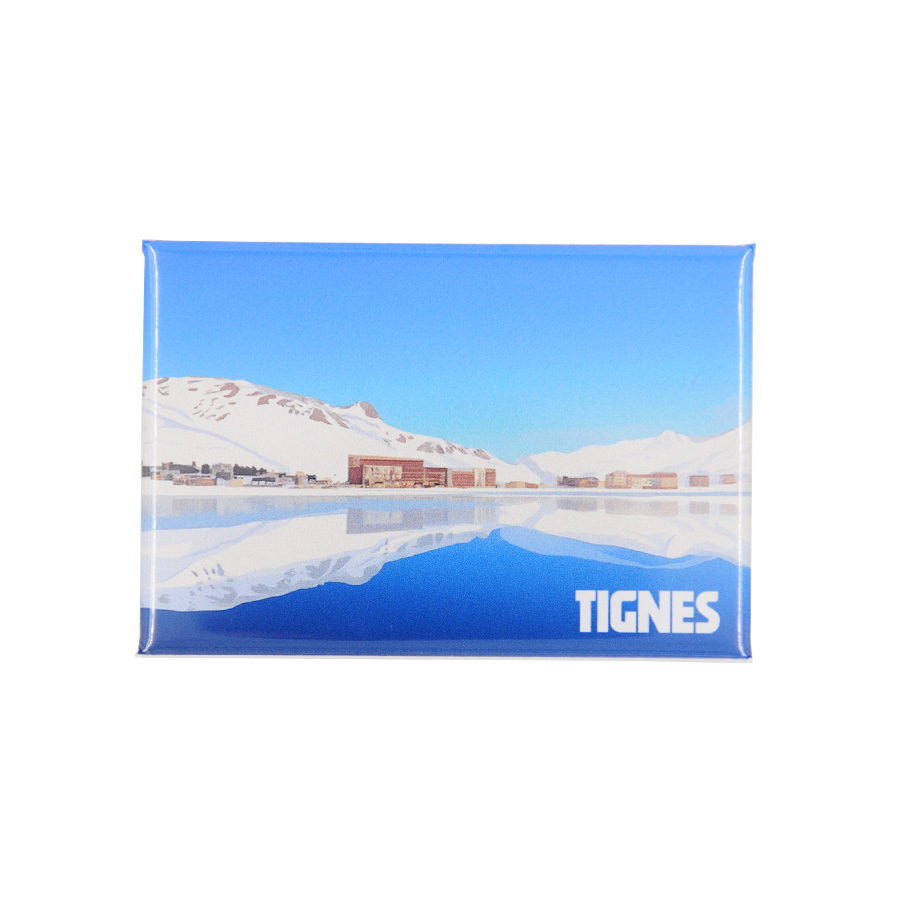 Magnet souvenir dessin du lac de Tignes en hiver.