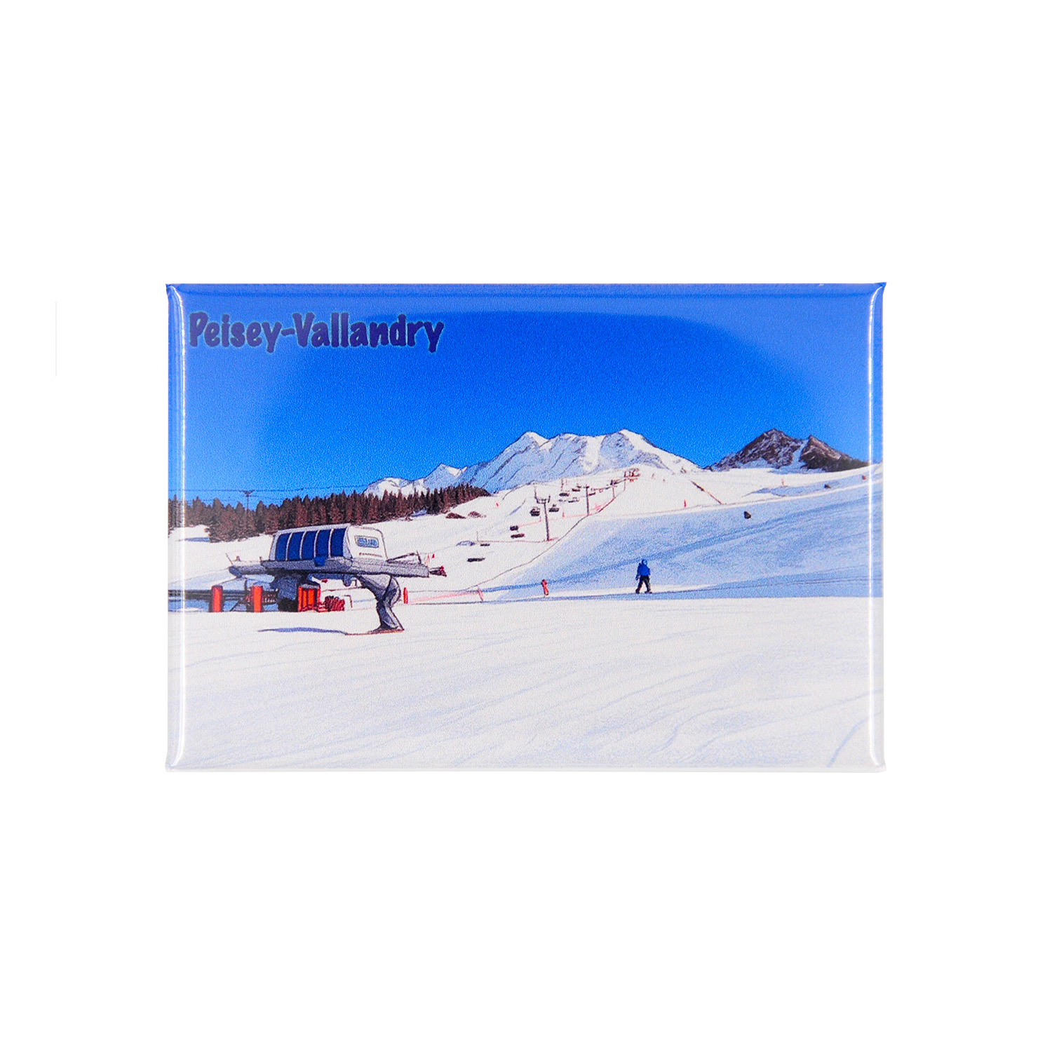 Magnet souvenir dessin des pistes de ski à Peisey-Vallandry en hiver.