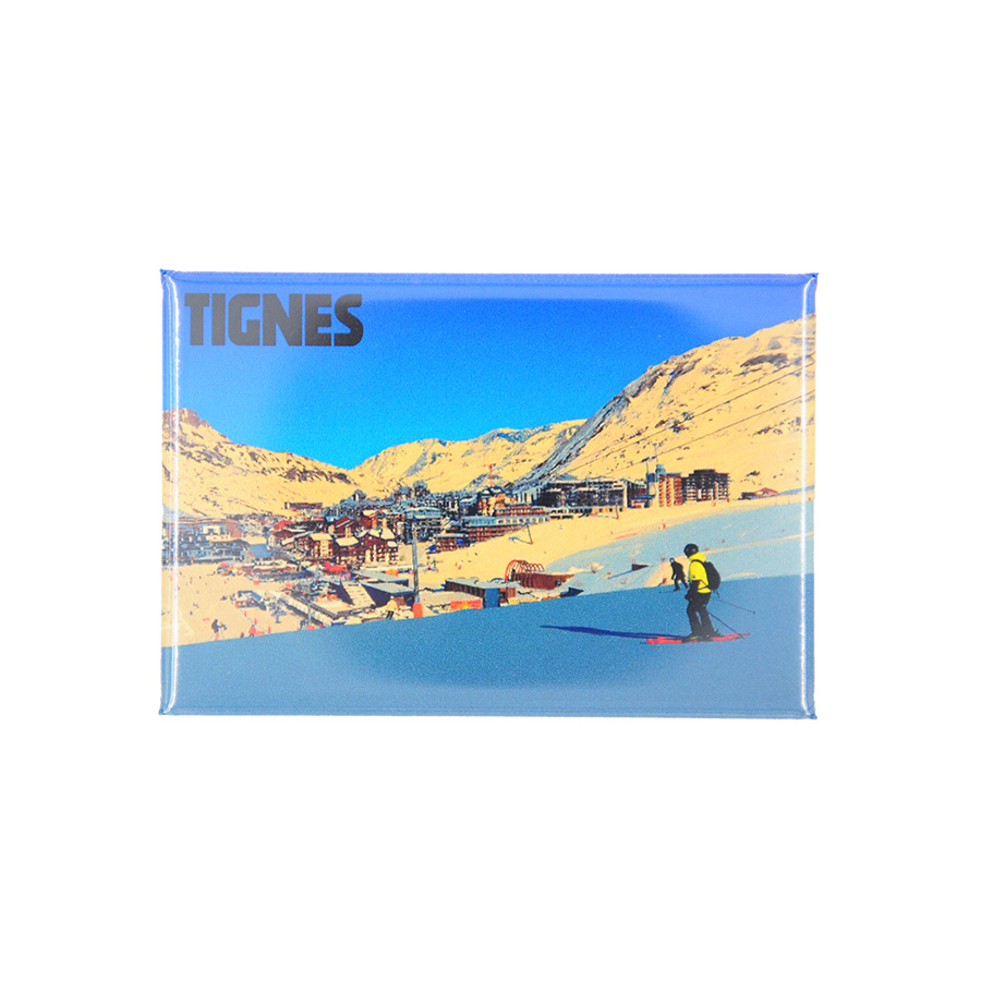 Magnet souvenir dessin pistes de ski Tignes en hiver.