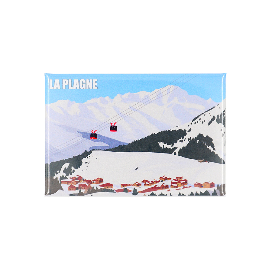 Magnet souvenir dessin La Plagne et le Mont Blanc en hiver.