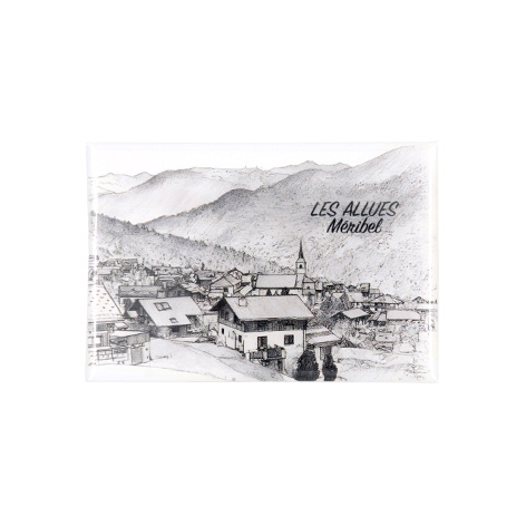 Magnet souvenir dessin traits du village des Allues dans la vallée de Méribel.