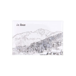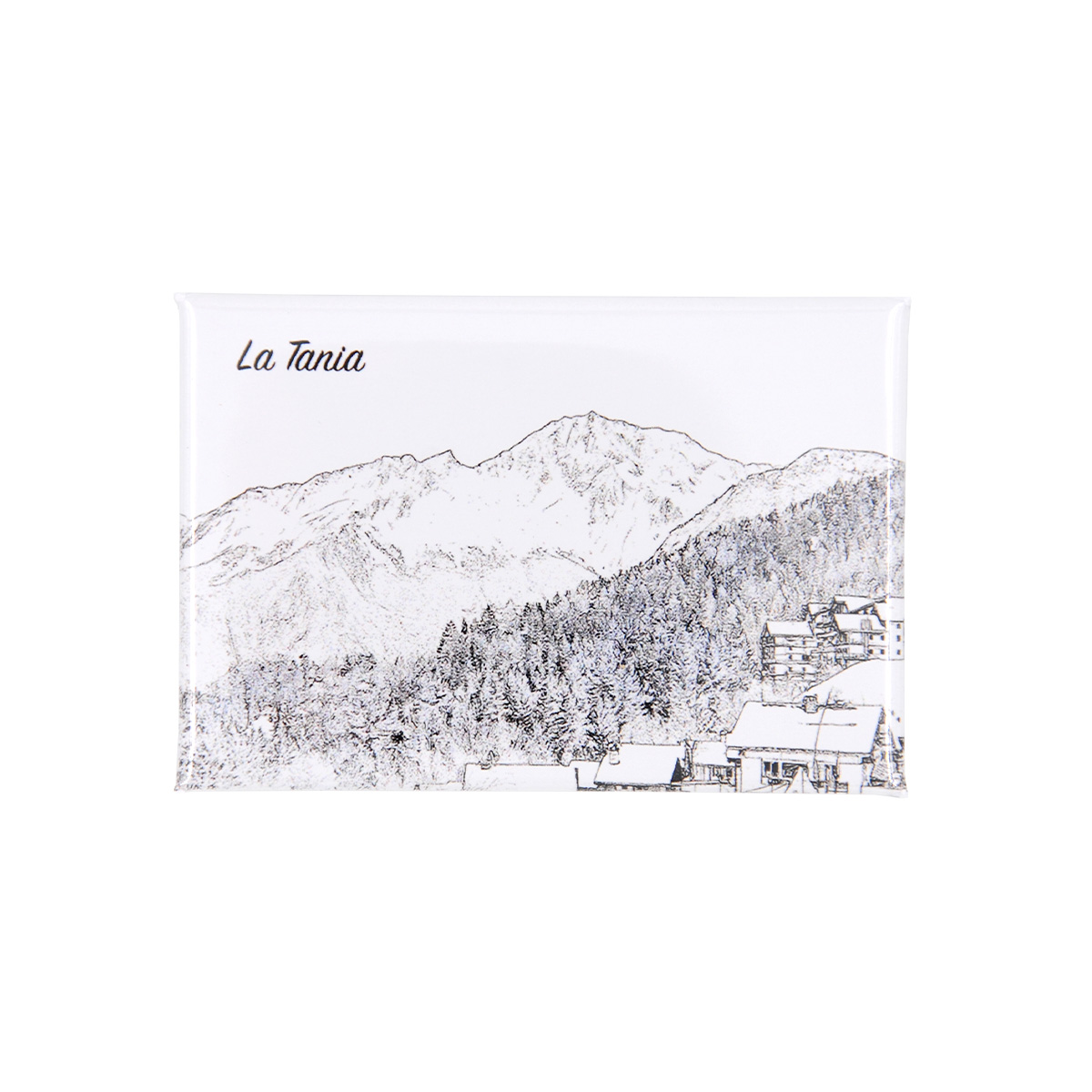 Magnet souvenir dessin traits de La Tania et la Grande Casse en hiver.