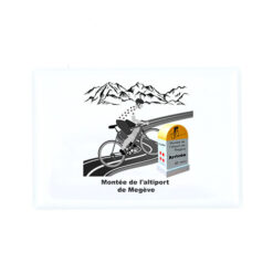 Magnet souvenir dessin vélo, montagne et borne kilométrique Megève.