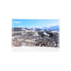 Magnet souvenir avec une photo hivernale de Megève face au Mont-Blanc.