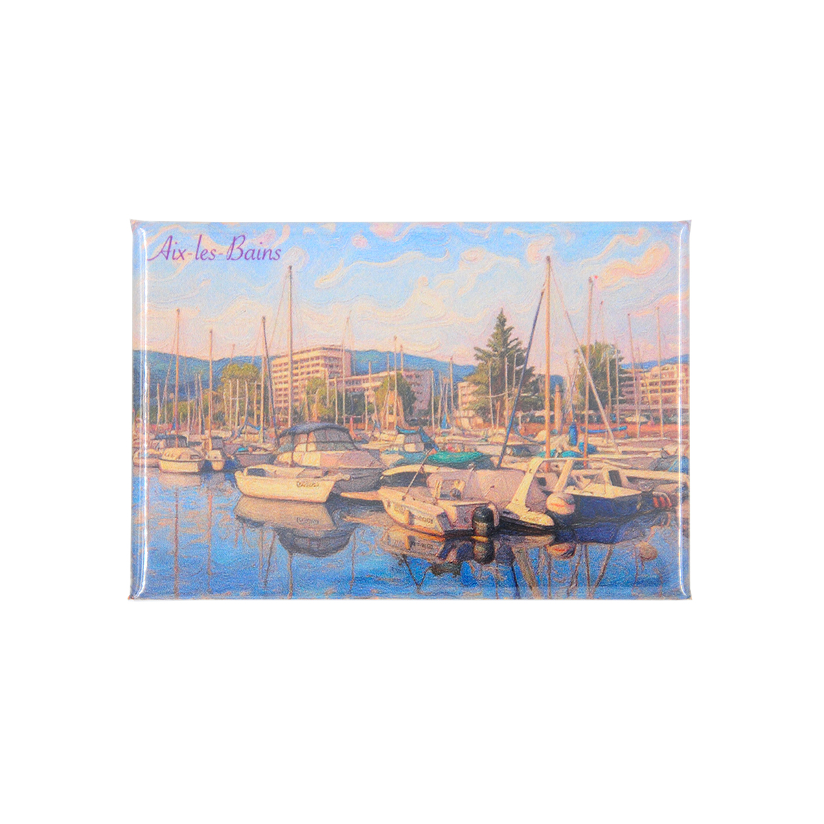 Magnet souvenir façon peinture du port d’Aix-les-Bains.