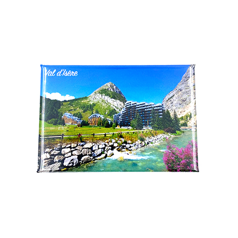 Magnet souvenir photo du front de neige de La Daille à Val d’Isère en été.