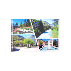 Magnet souvenir photos de la station thermale de Brides-les-Bains en été.