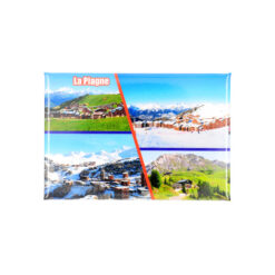 Magnet souvenir photos de La Plagne Villages, Centre,… en été / hiver.