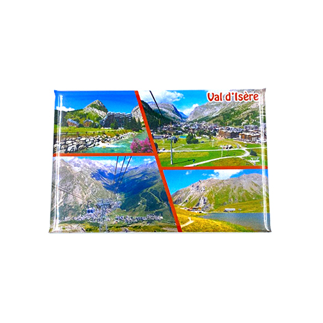 Magnet souvenir photos de Val d’Isère en été.