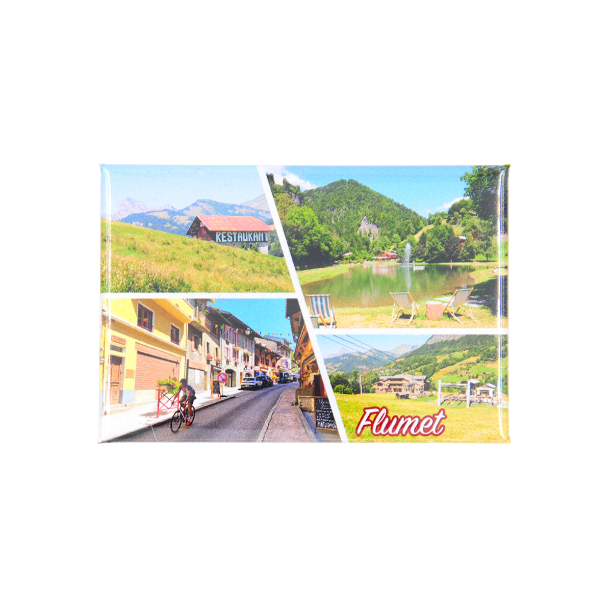Magnet souvenir photos pêle-mêle de Flumet en été.