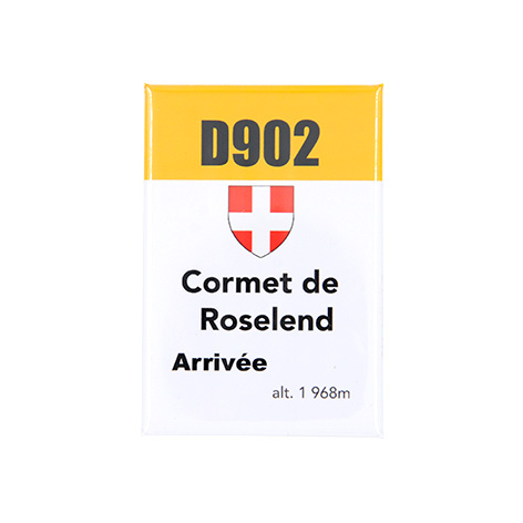 Magnet souvenir type borne Cormet de Roselend avec l’altitude d’arrivée.