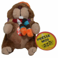 Marmotte porte-clés chanteuse. Hauteur de la peluche ± 12 cm.