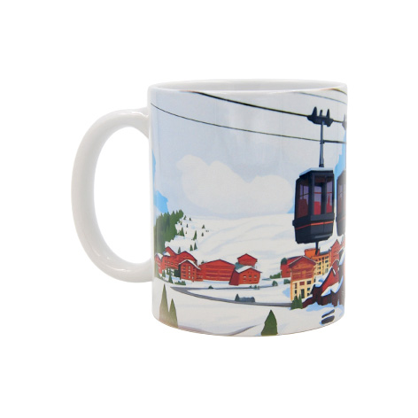 Mug souvenir dessin entre La Plagne Soleil et Villages en hiver.