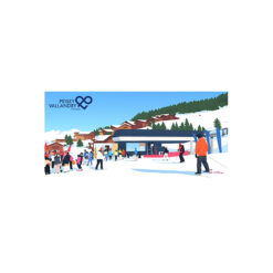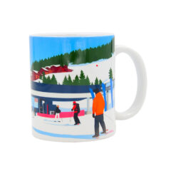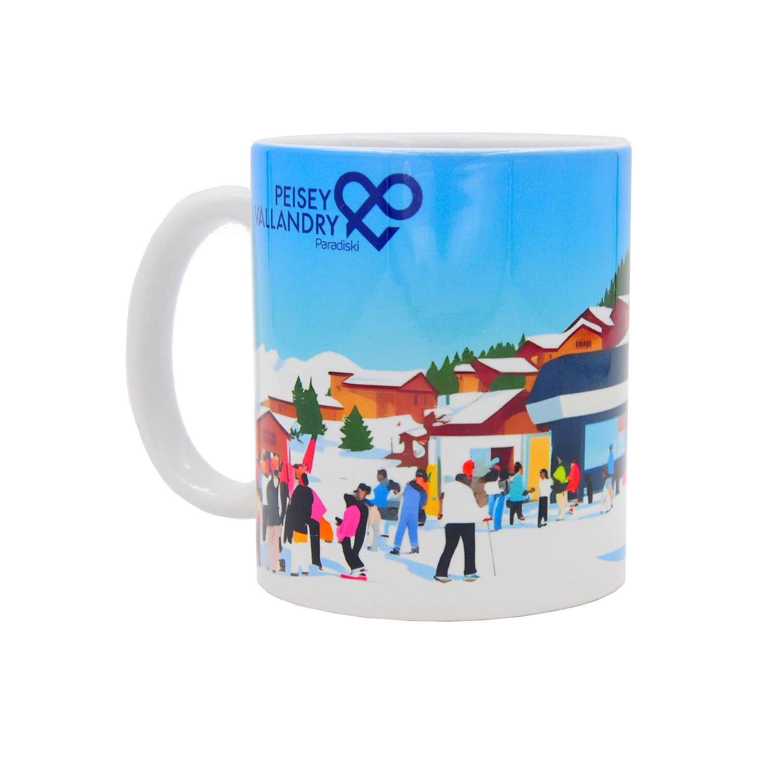 Mug souvenir dessin du front de neige de Peisey-Vallandry en hiver.