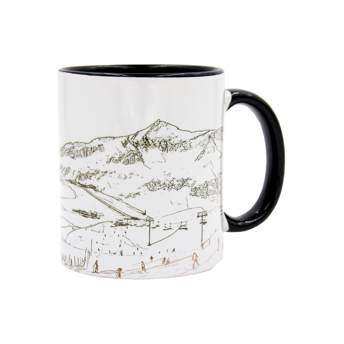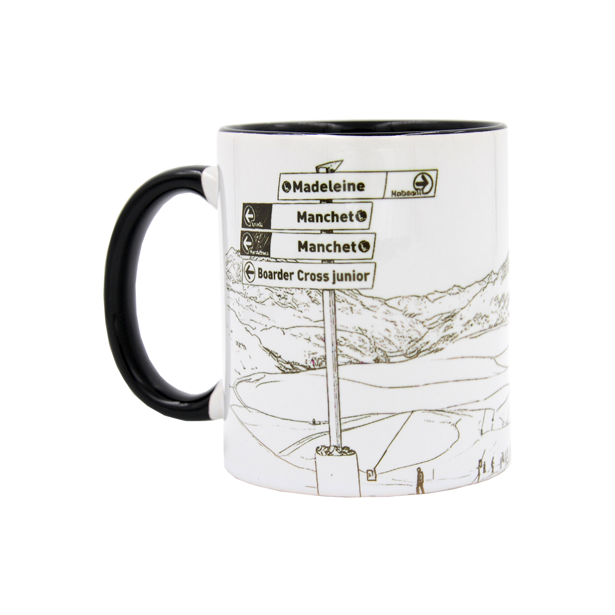 Mug dessin traits des pistes de ski à Val d’Isère en hiver.