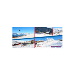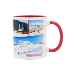 Mug souvenir pêle-mêle photos de Peisey-Vallandry. Anse et intérieur rouge de la tasse.