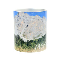 Mug photo d’une vache à Méribel en été avec en fond l’Aiguille du Fruit. Mug personnalisé en France à Méribel dans le département de la Savoie.