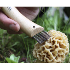 La lame de 8 cm en inox est courbe pour faciliter la coupe. Son dos denté permet de gratter et nettoyer le champignon. La brosse en soies naturelles située au bout du manche est idéale pour dépoussiérer la cueillette et ôter facilement la terre.