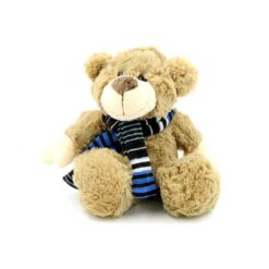 Peluche ours marron avec écharpe. Hauteur assis : 15,5cm.