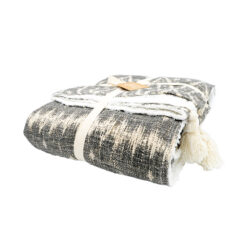 Plaid Atlas coton brut doublé sherpa gris de La Maison de Lilo.