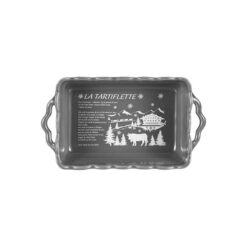 Plat à tartiflette rectangulaire gris. La tartiflette est une recette de cuisine typique savoyarde, ce plat à tartiflette gris vous aidera dans l’élaboration à l’aide de la recette inscrite dessus. Existe en 3 tailles.