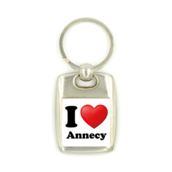Porte-clés en métal avec sur les 2 faces du porte-clés I Love Annecy.