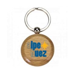 Porte-clés en bois avec sur les 2 faces du porte-clés le logo de L’Alpe d’Huez.