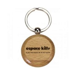 Porte-clés en bois avec sur les 2 faces du porte-clés le logo Espace Killy.