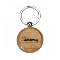 Porte-clés en bois avec sur les 2 faces du porte-clés le logo de Paradiski.