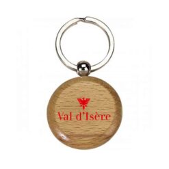 Porte-clés en bois avec sur les 2 faces du porte-clés le logo de Val d’Isère.