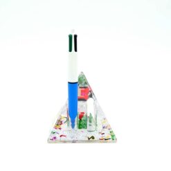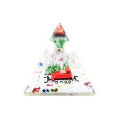 Pyramide à neige dameuse. A l’arrière de la boule à neige se trouve deux emplacements pour deux stylos (voir photo en exemple).
