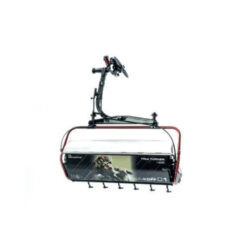 Siège D-Line Rouge avec bulle 6 places, sur le dossier du siège se trouve une affiche “Tina Turner 1996”.
